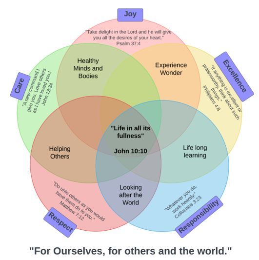 At the heart of what we do are our Christian values of Joy, Respect, Care, Responsibility and Excellence. Students learn how to live these values for themselves, for othersand for the World.